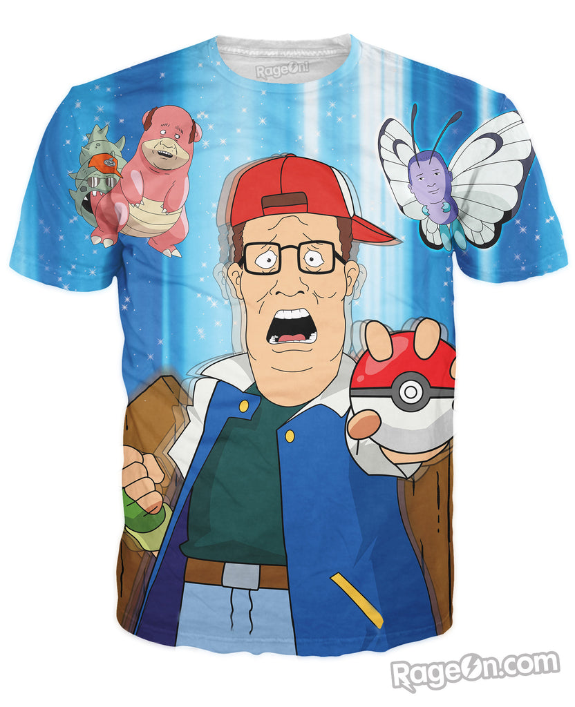 Check out this hilarious, all-over-print Bwahhterfree T-Shirt! This sexy tee features a mash up of the popular TV show, King Of The Hill and Pokemon! Inspired by the Youtube video this sick design will surely turn some heads! Get this fully-sublimated and vibrant design today, only on RageOn!