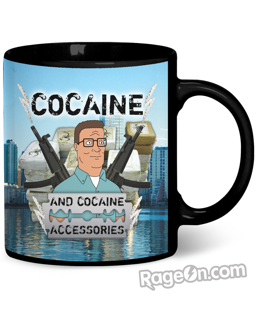 Strickland Propane wasn't paying the bills so Hank Hill isô??pimping out sweet lady blow on our all-over print Cocaine and Cocaine Accessories Coffee Mugô??. Now he's really King of the Hill as Arlen, Texas' very own Tony Montana.