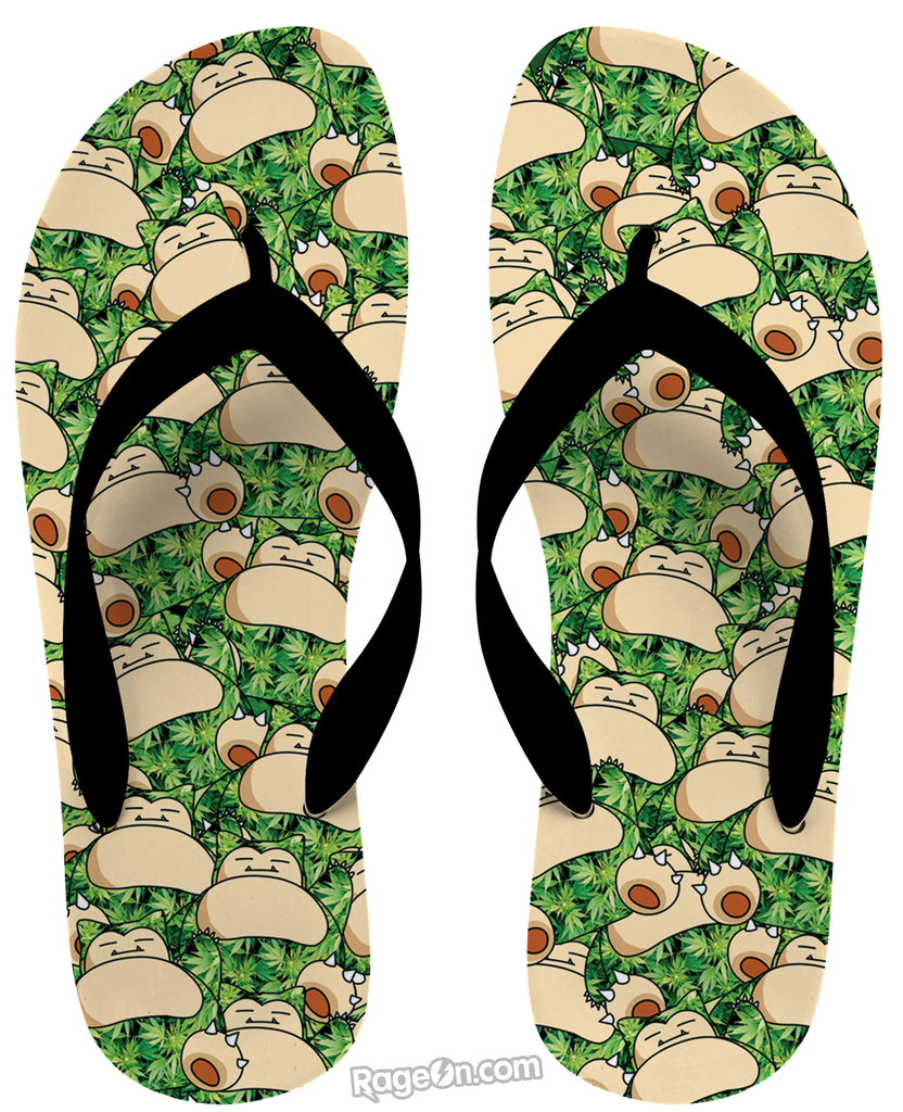 Snorlax loves to smoke up, eat, and sleep! Remind you of anyone you know? Get this sick one-sided print Snorlax Flip FlopsåÊtoday, only from RageOn.com!!